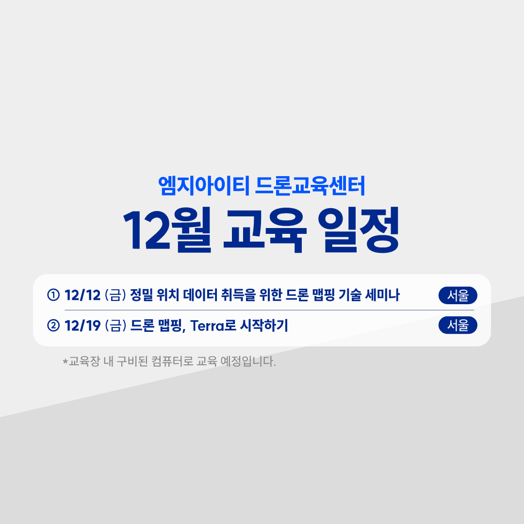 12/12(금) (6차) 정밀 위치 데이터 취득을 위한 드론 맵핑 기술 세미나